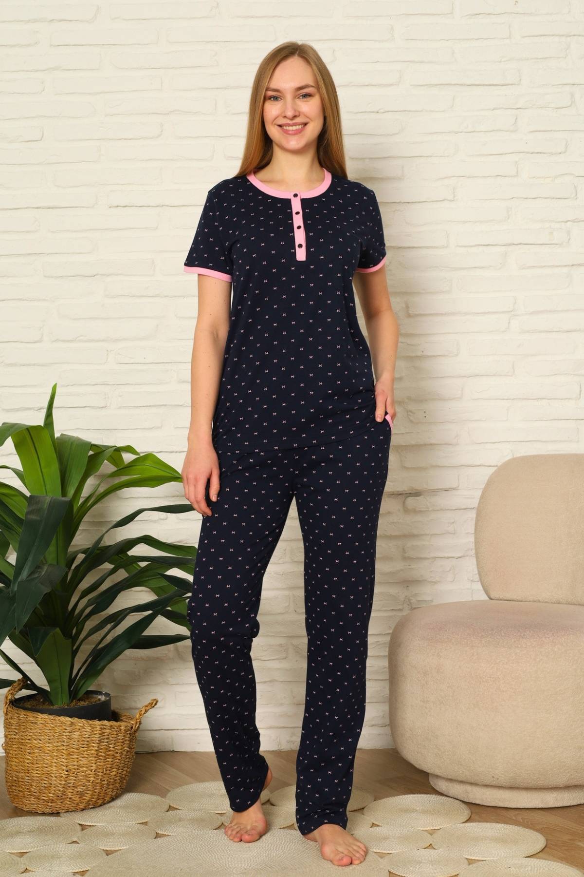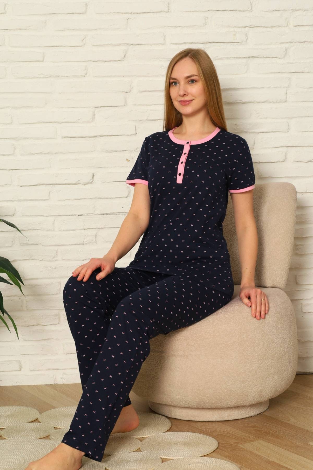 Bayan Pijama Takım - Fiyonk baskılı Kısa Kol Penye 2801KY