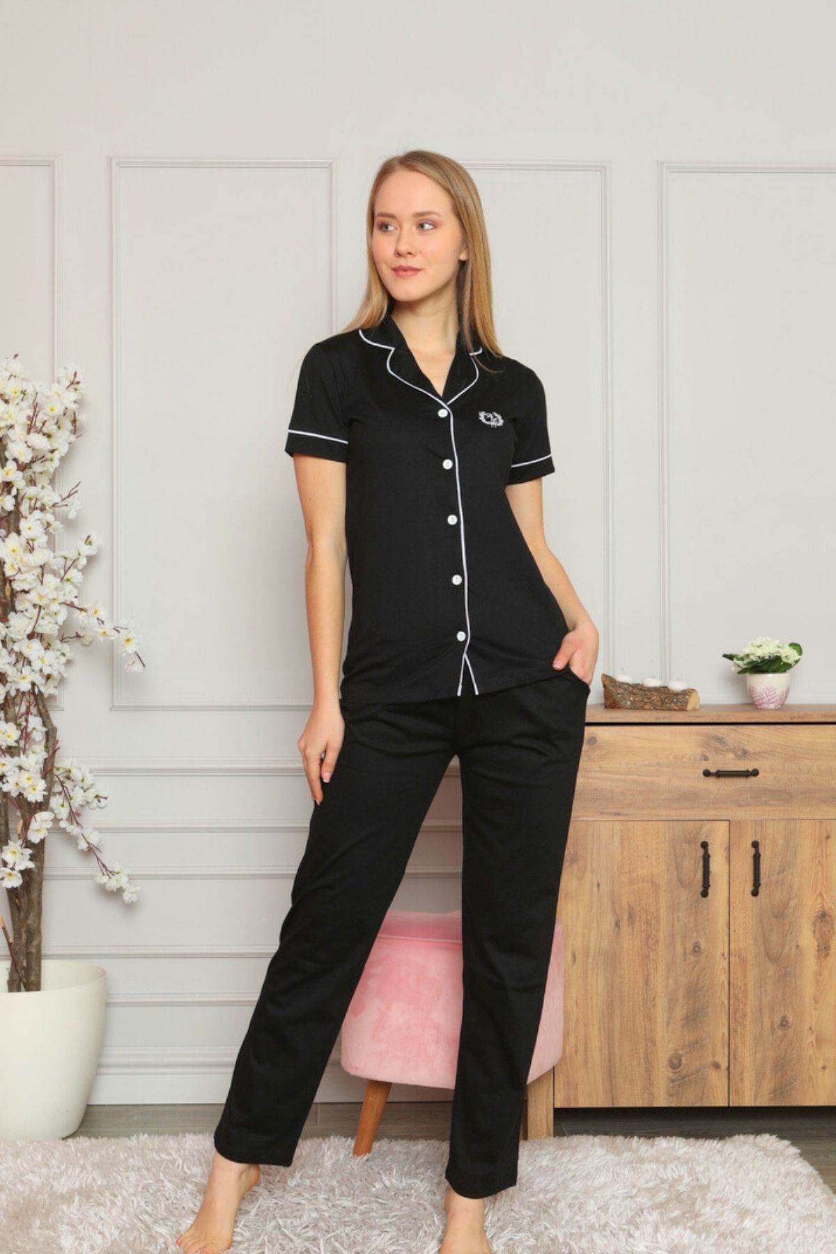 Pamuk kumaşlardan üretilen Alimer pijamanızı dolabınızda bir ömür yer edebilecek kalitede üretildi.