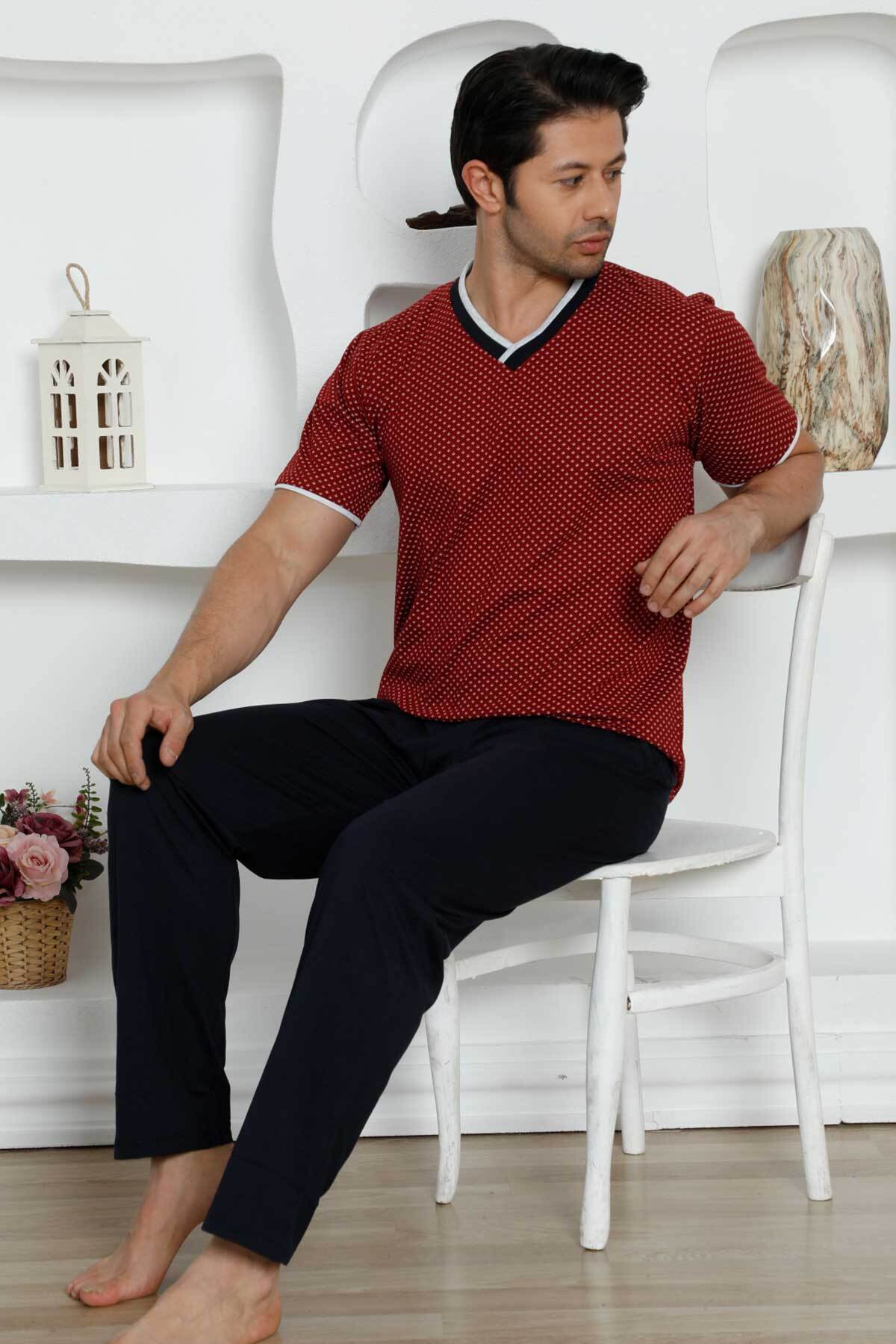 Bordo Kısa Kollu Erkek Pijama Takımı 1199KY