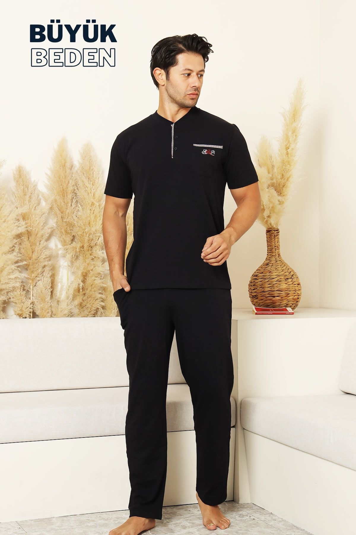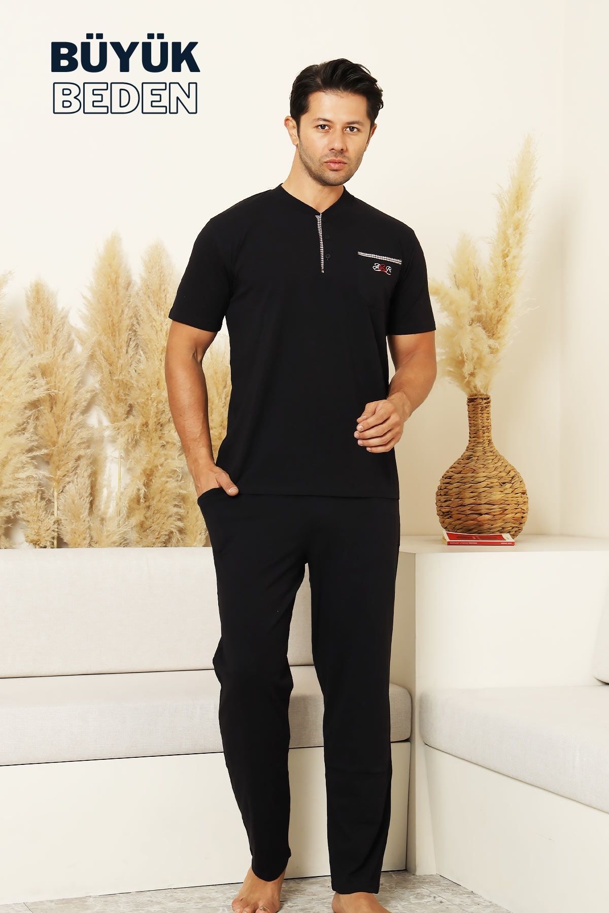 Büyük Beden Erkek Pijama Takımı - Lacivert Arma Nakışlı Likralı Penye 1194KYB