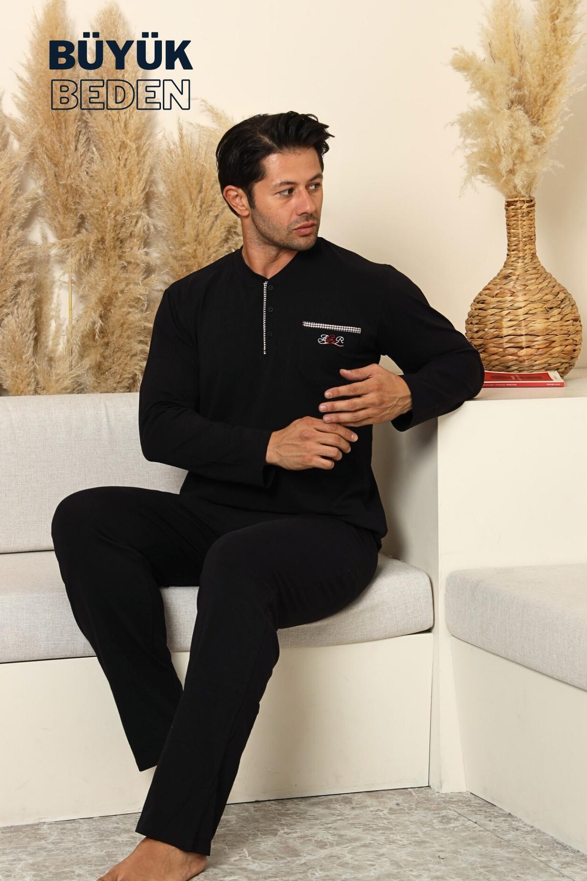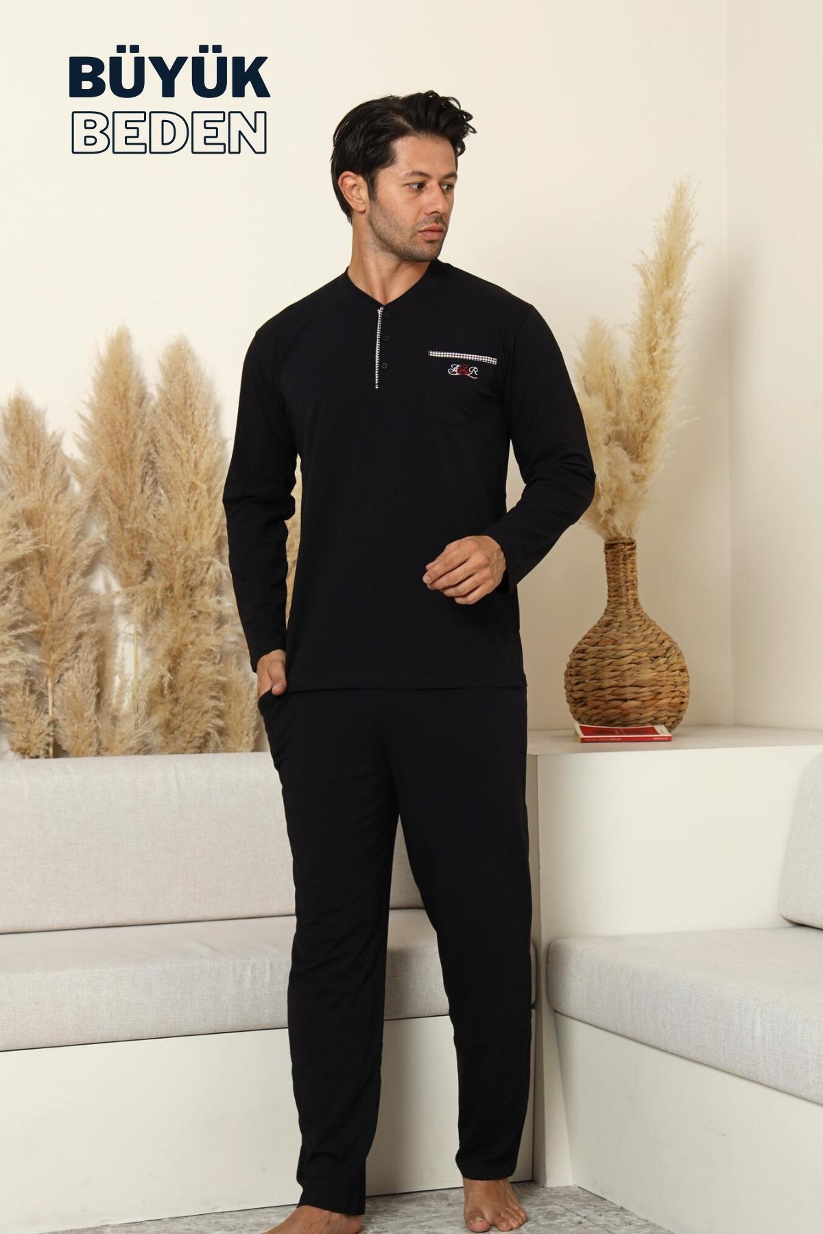Büyük Beden Erkek Pijama Takımı - Siyah Arma Nakışlı Likralı Penye 1194UYB