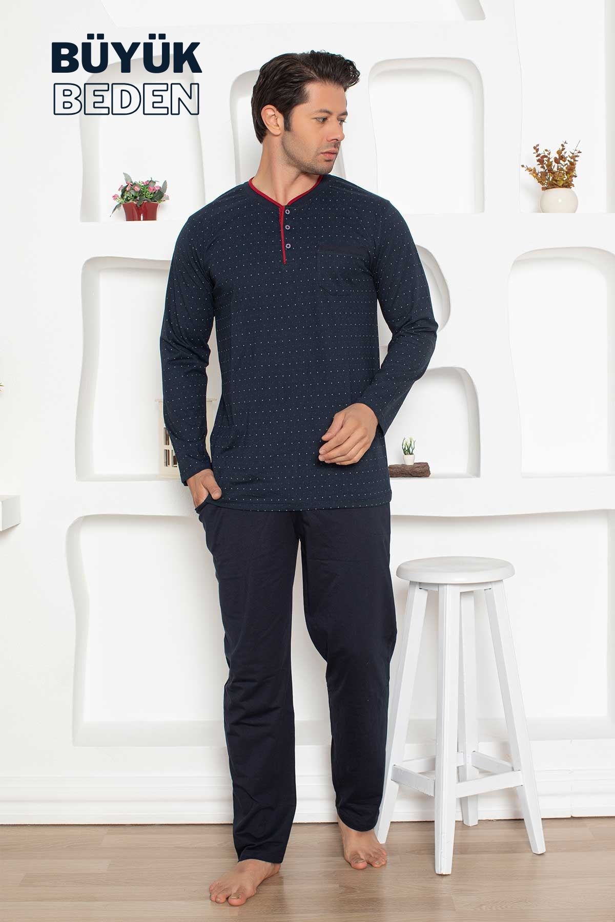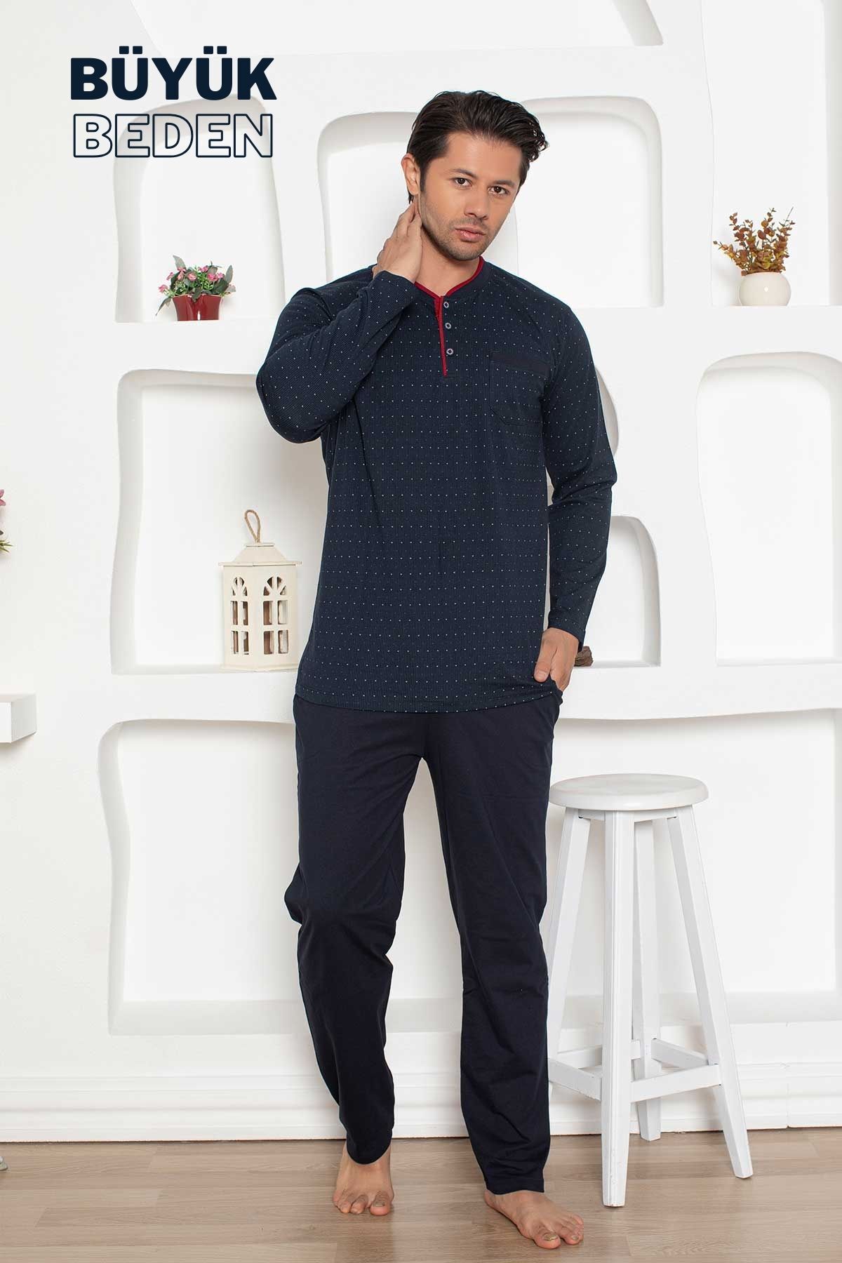 Büyük Beden Erkek Pijama Takımı - Lacivert Mini Puan Desen Penye 1204UYB