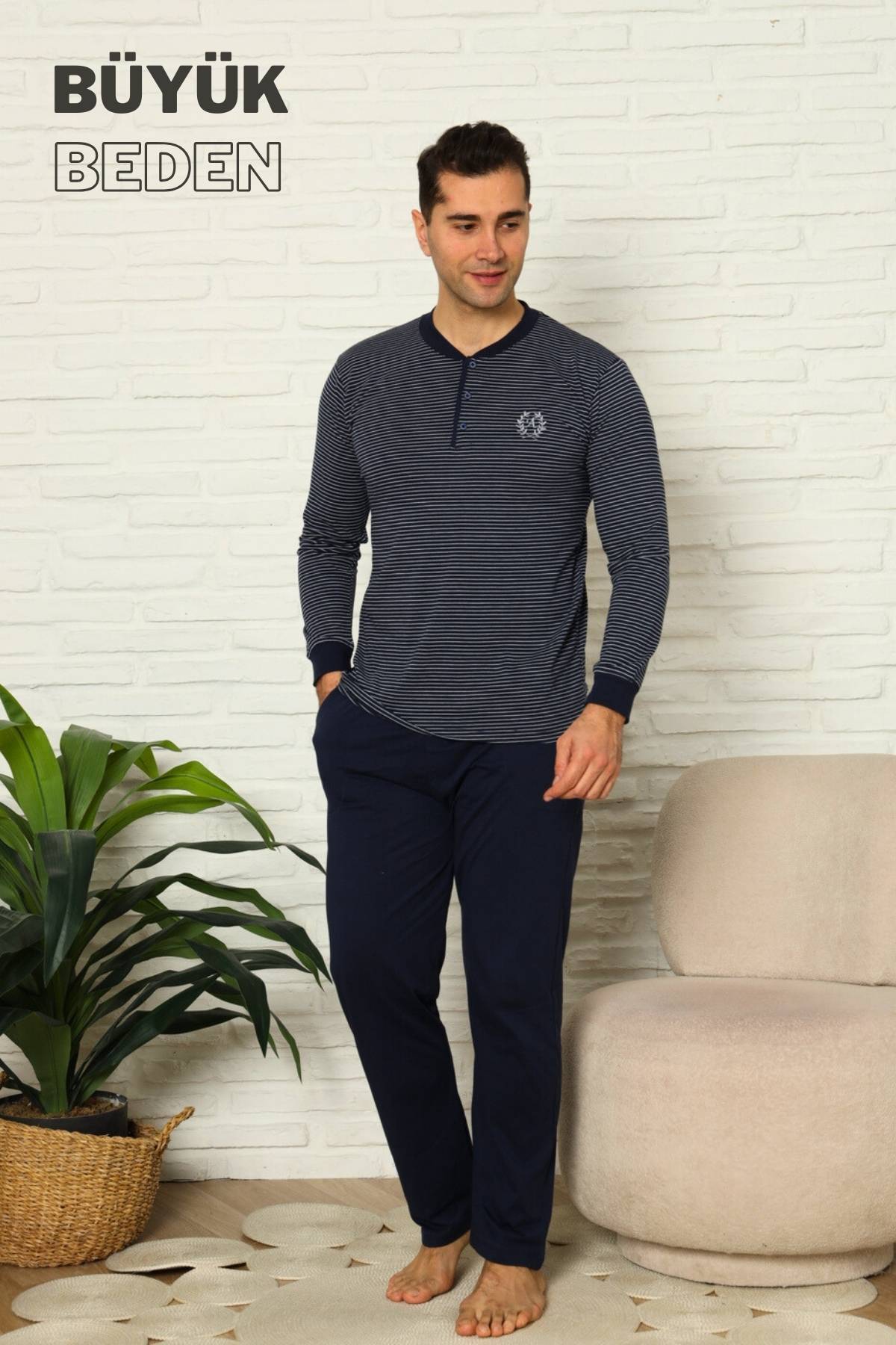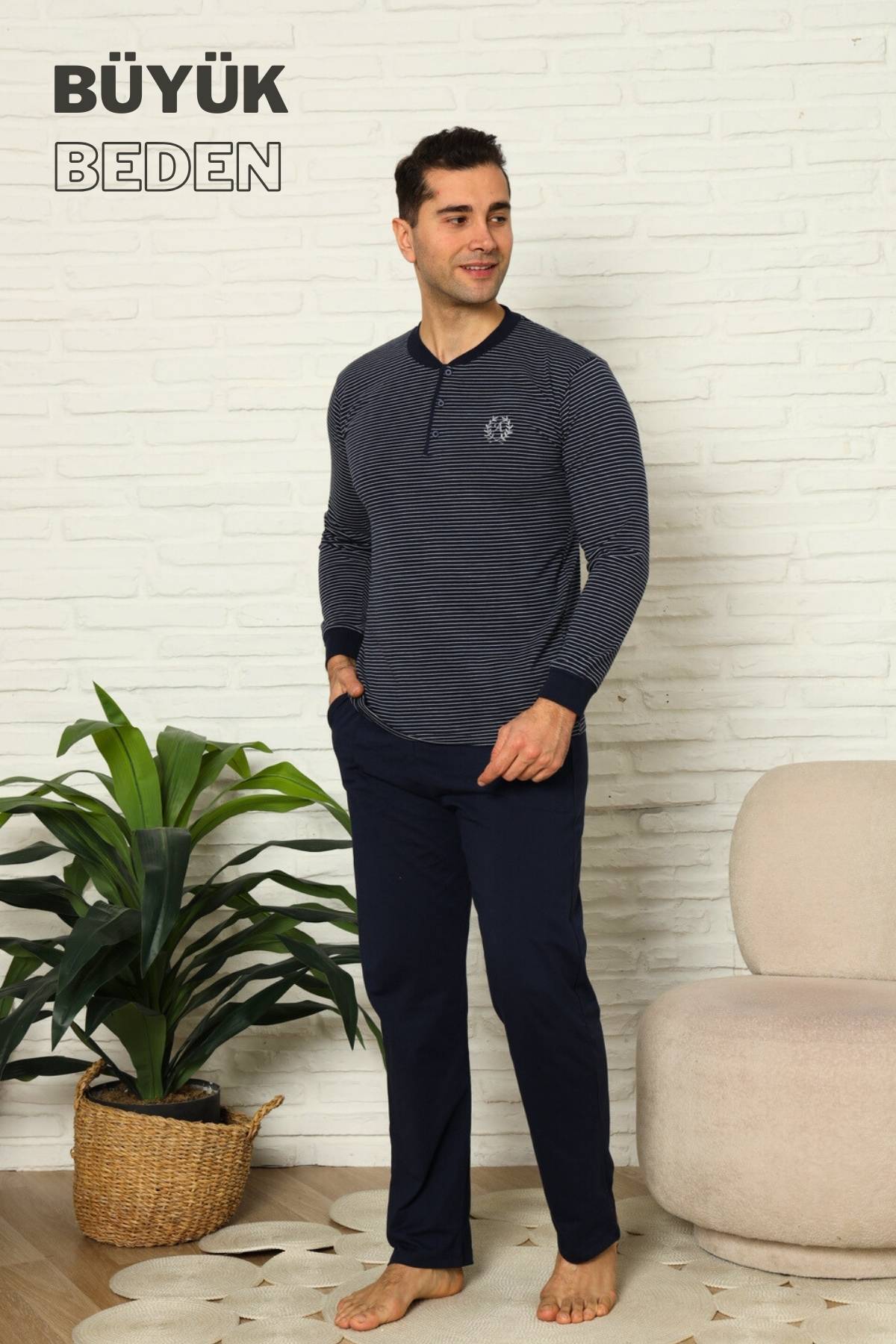 Büyük Beden Erkek Pijama Takımı - Lacivert Uzun Kollu Penye 1219UYB