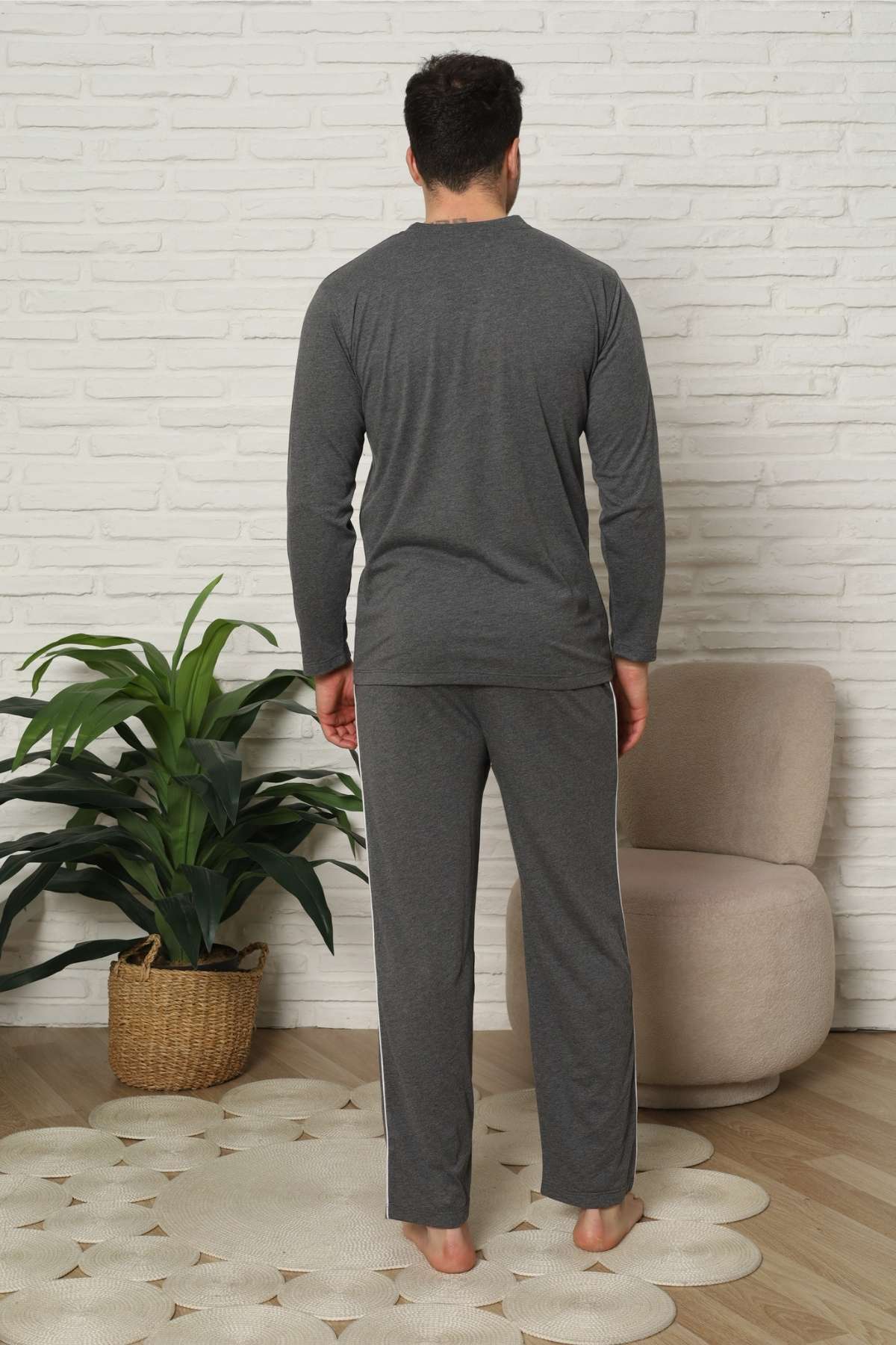 Erkek Pijama Takımı - Antrasit Arma Nakışlı Biyeli Uzun Kollu Penye 1216UY