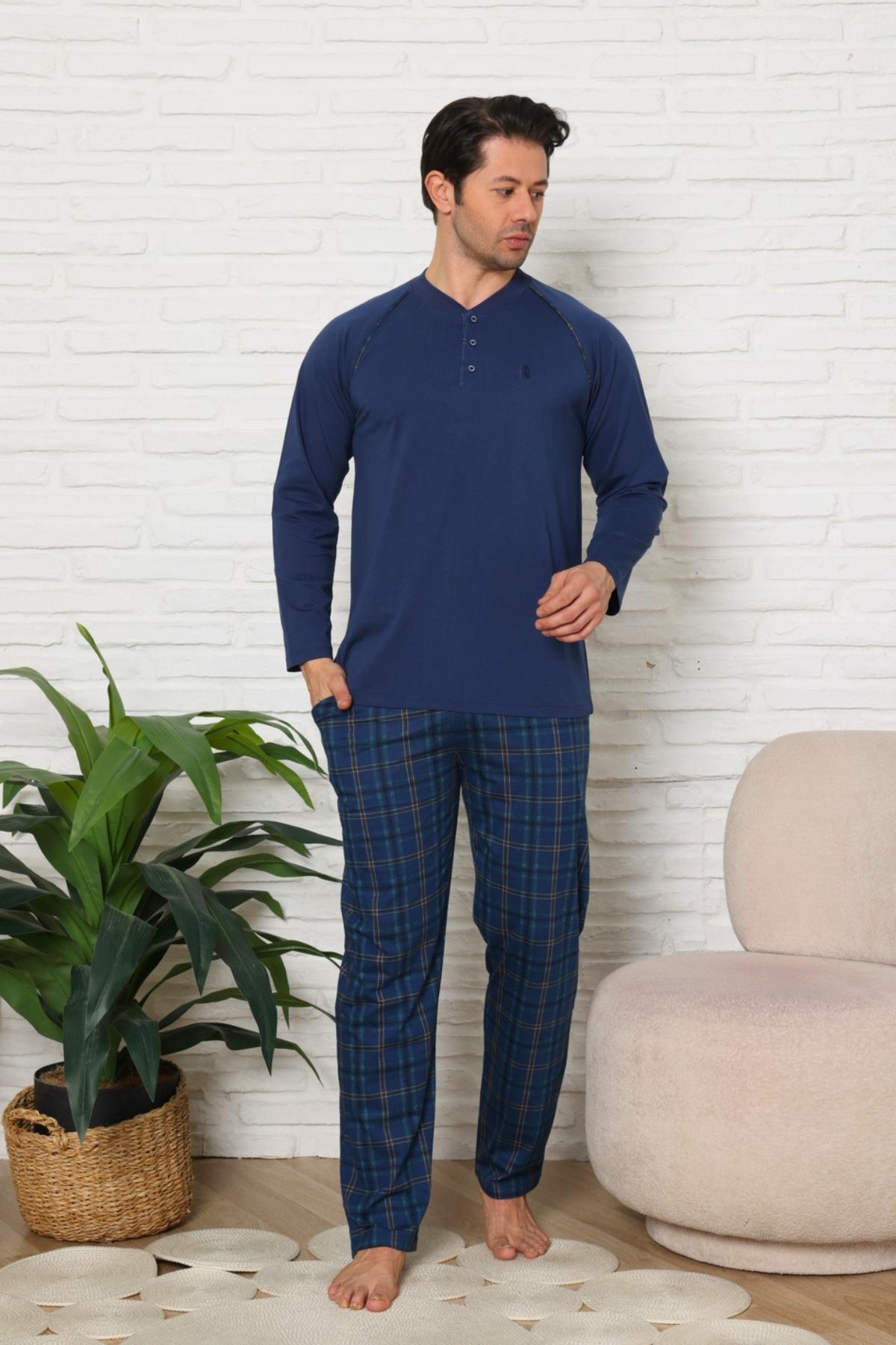 Erkek Pijama Takımı - İndigo Ekoseli Uzun Kollu Penye 1224UY
