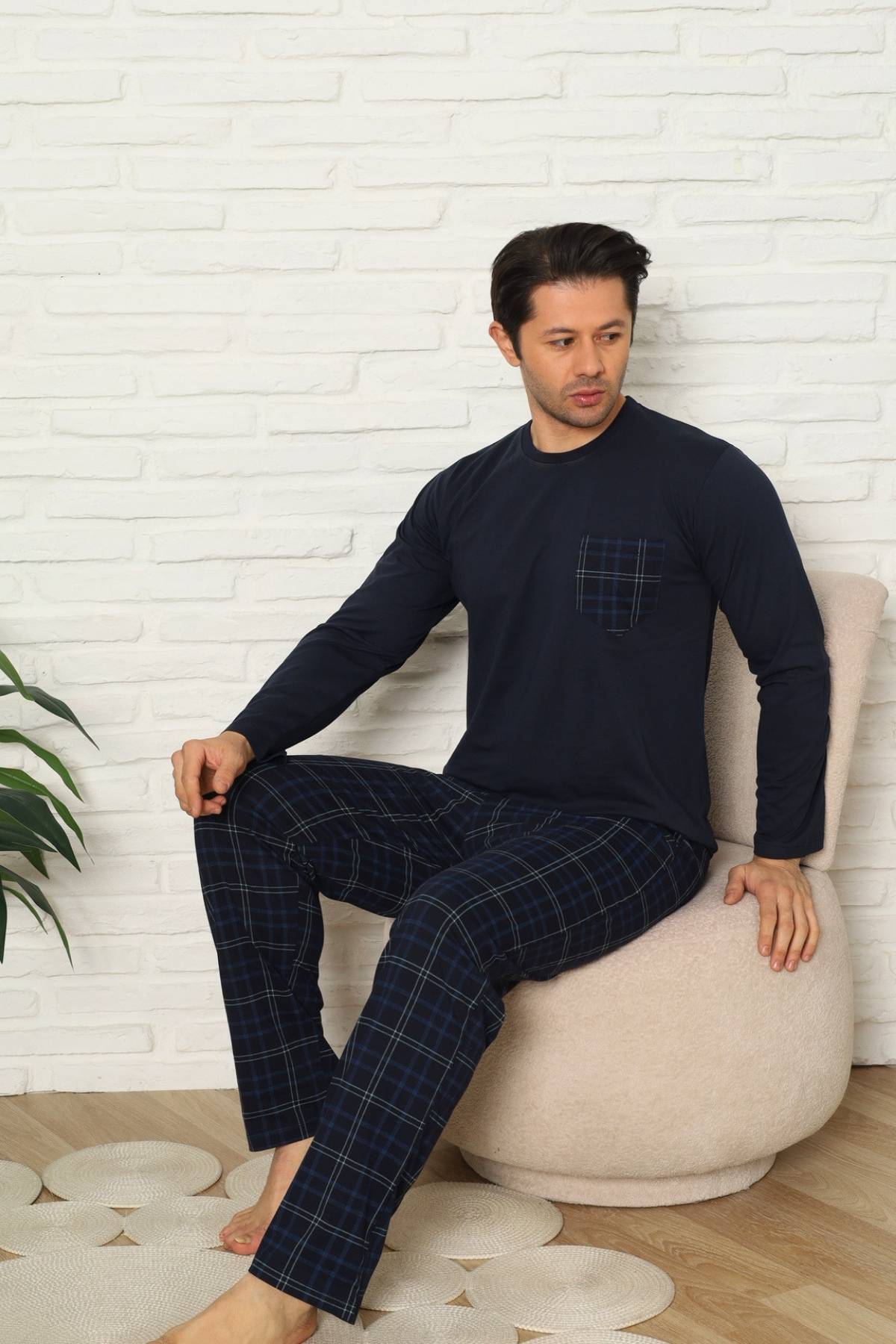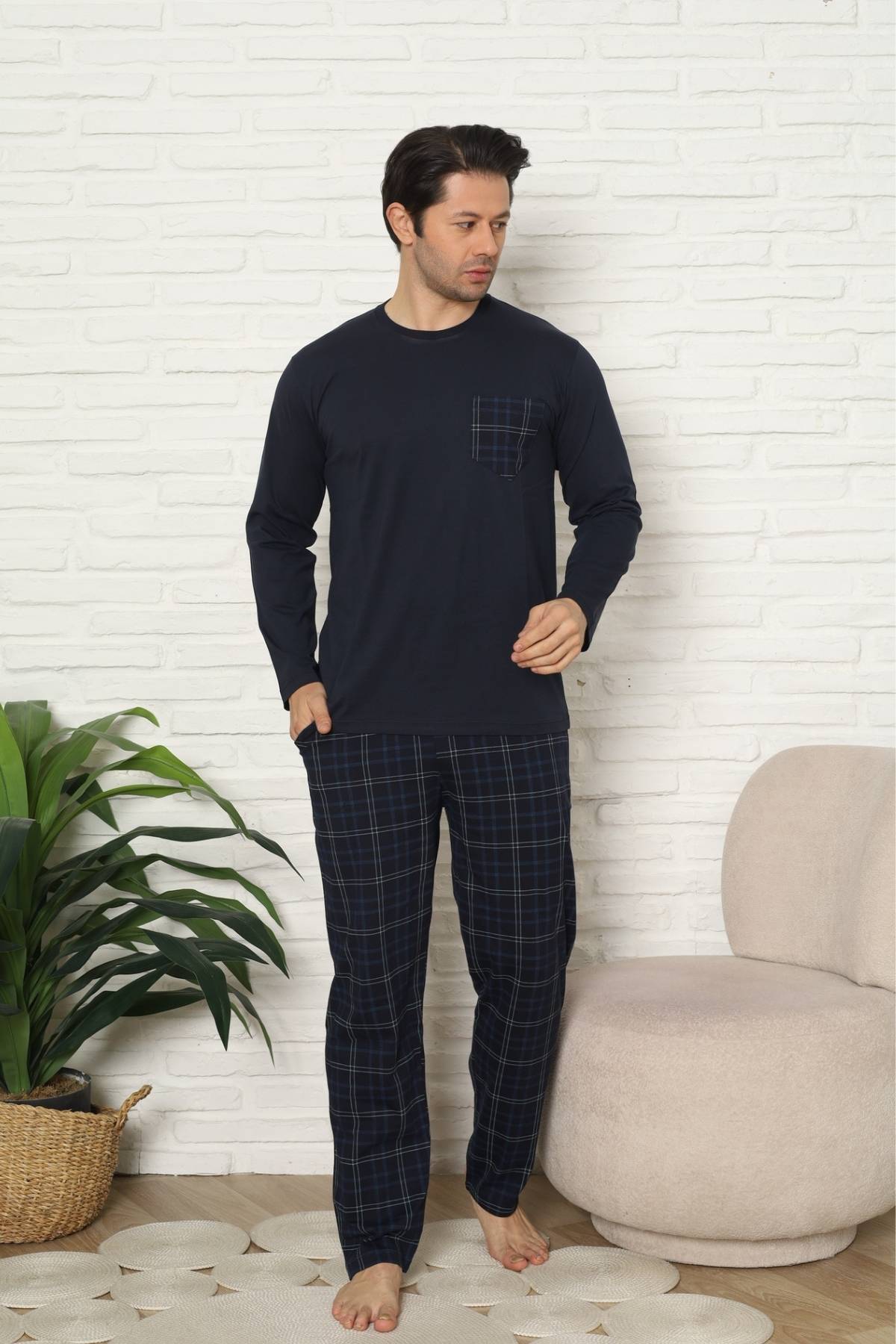 Erkek Pijama Takımı | Lacivert Kareli | Uzun Kollu | Penye (1223UY)