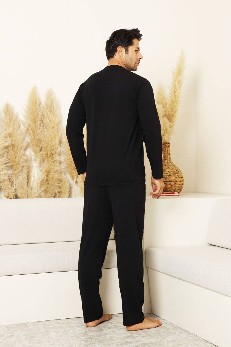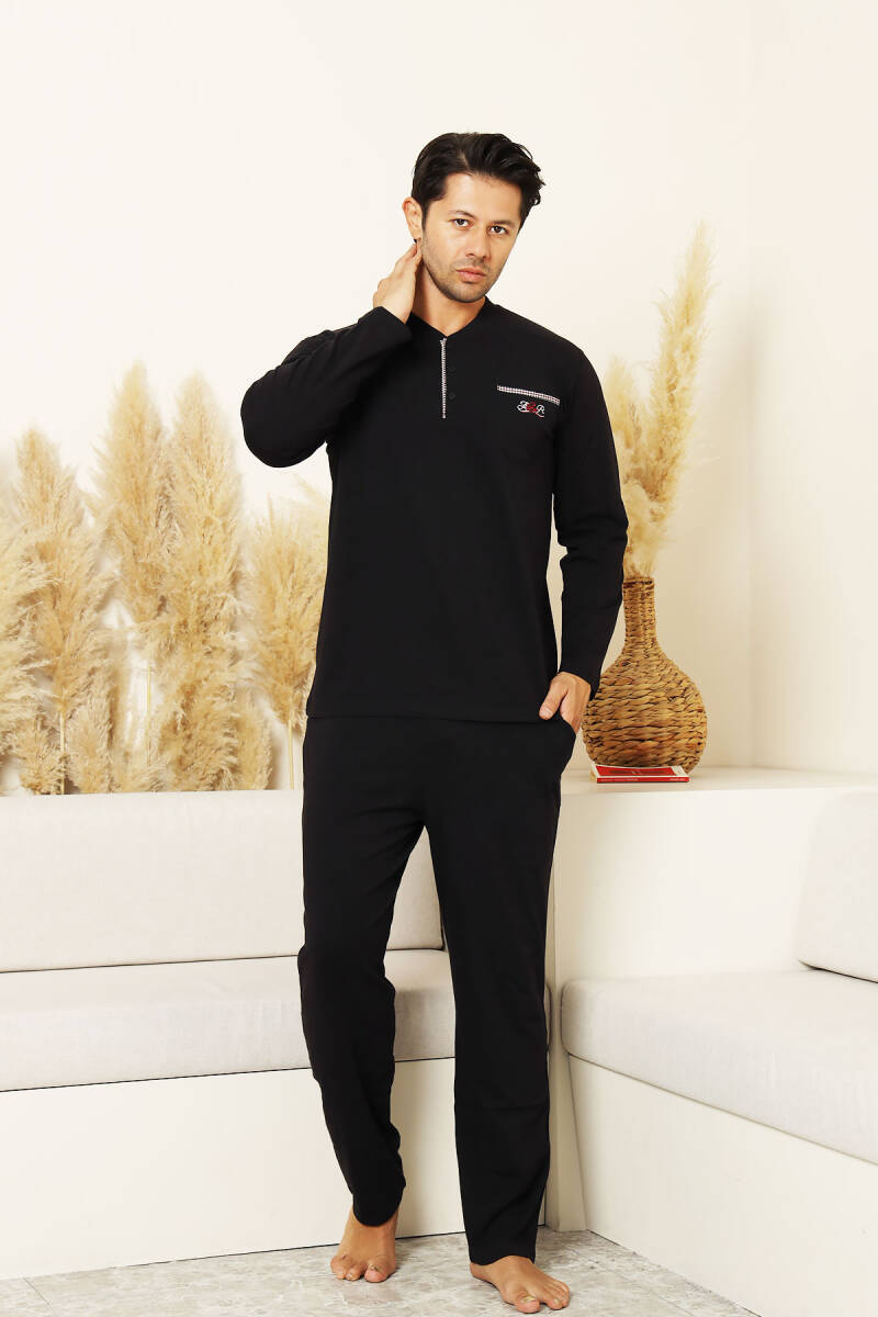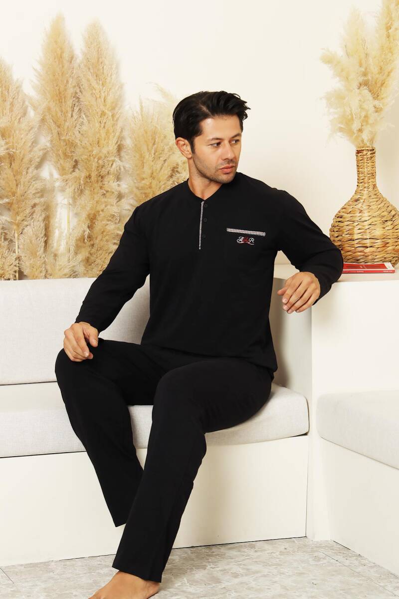 Erkek Pijama Takımı - Siyah Arma Nakışlı Likralı Uzun Kollu Penye 1194UK