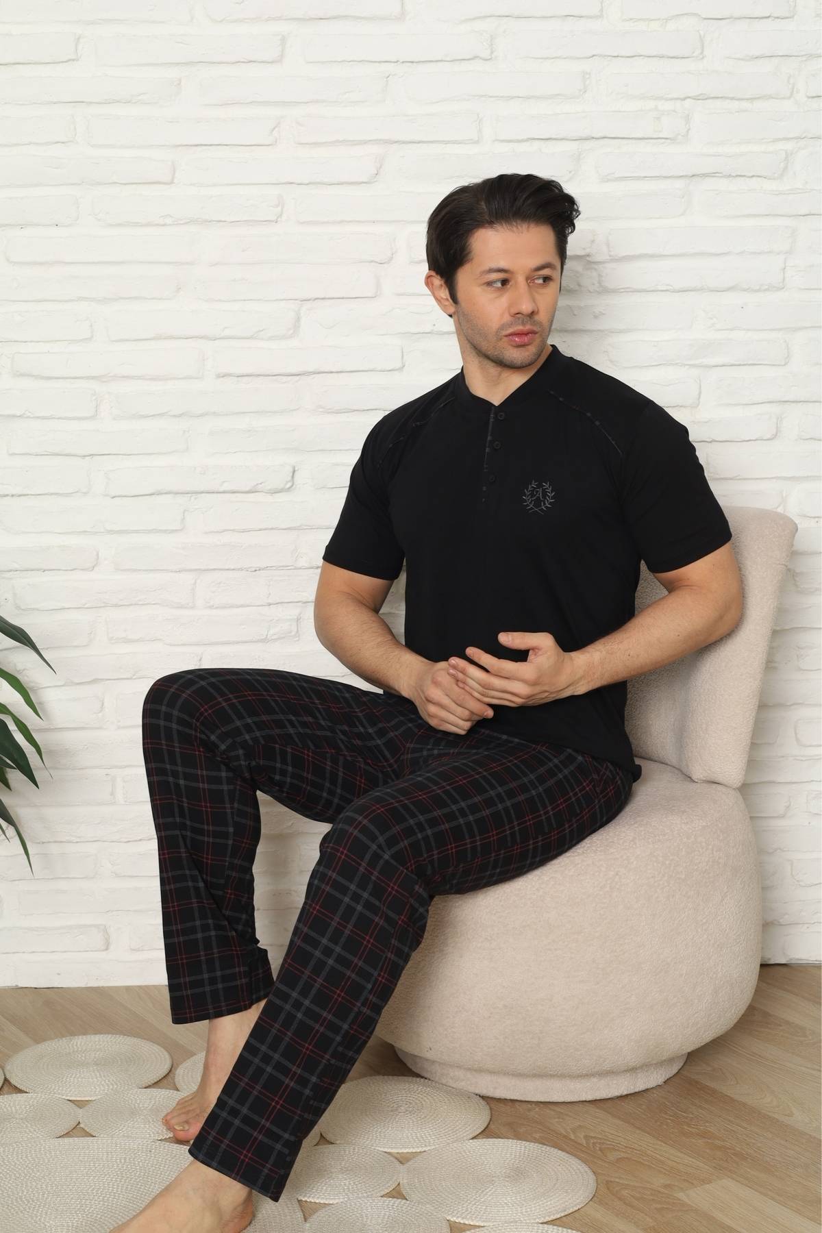 Erkek Pijama Takımı - Siyah Kareli Kısa Kollu Penye 1227KY
