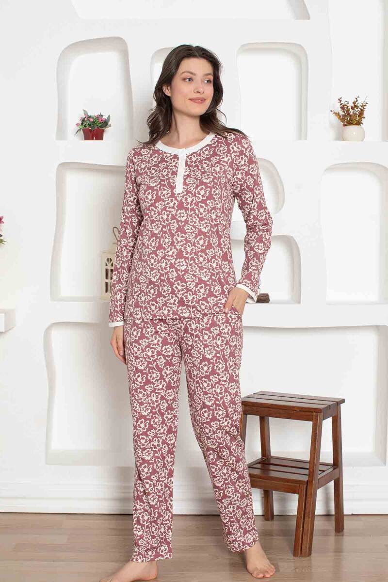 Gül Kurusu Çiçek Desenli Penye Bayan Pijama Takımı 2794UY