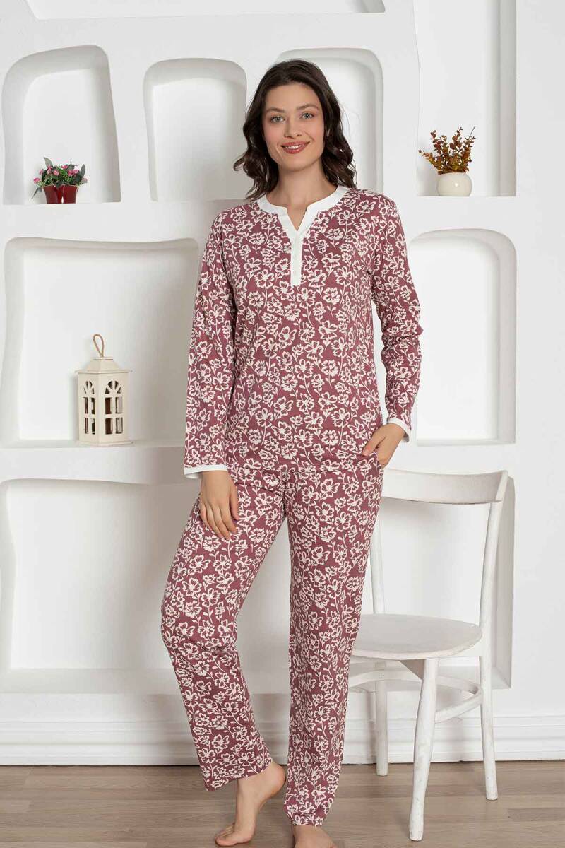 Gül Kurusu Çiçek Desenli Penye Bayan Pijama Takımı 2795UY