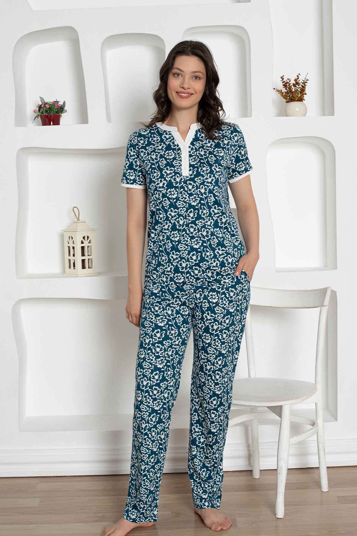 İndigo Çiçek Desenli Penye Bayan Pijama Takımı 2795KY