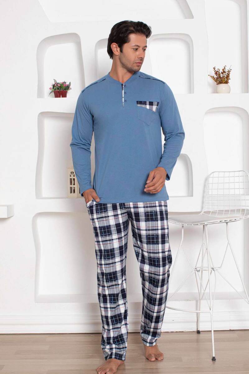 İndigo Kareli Uzun Kollu Erkek Pijama Takımı 1207UY