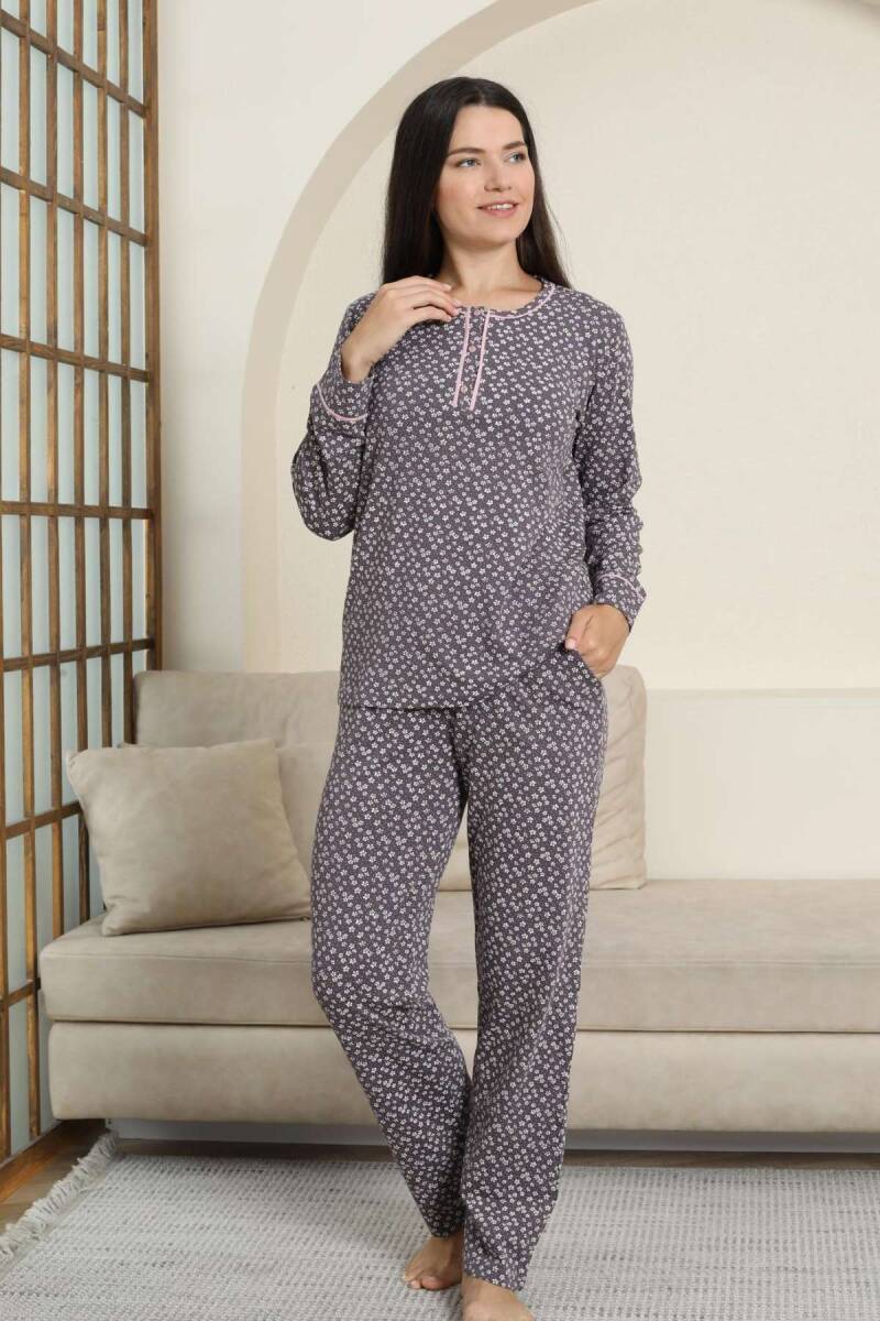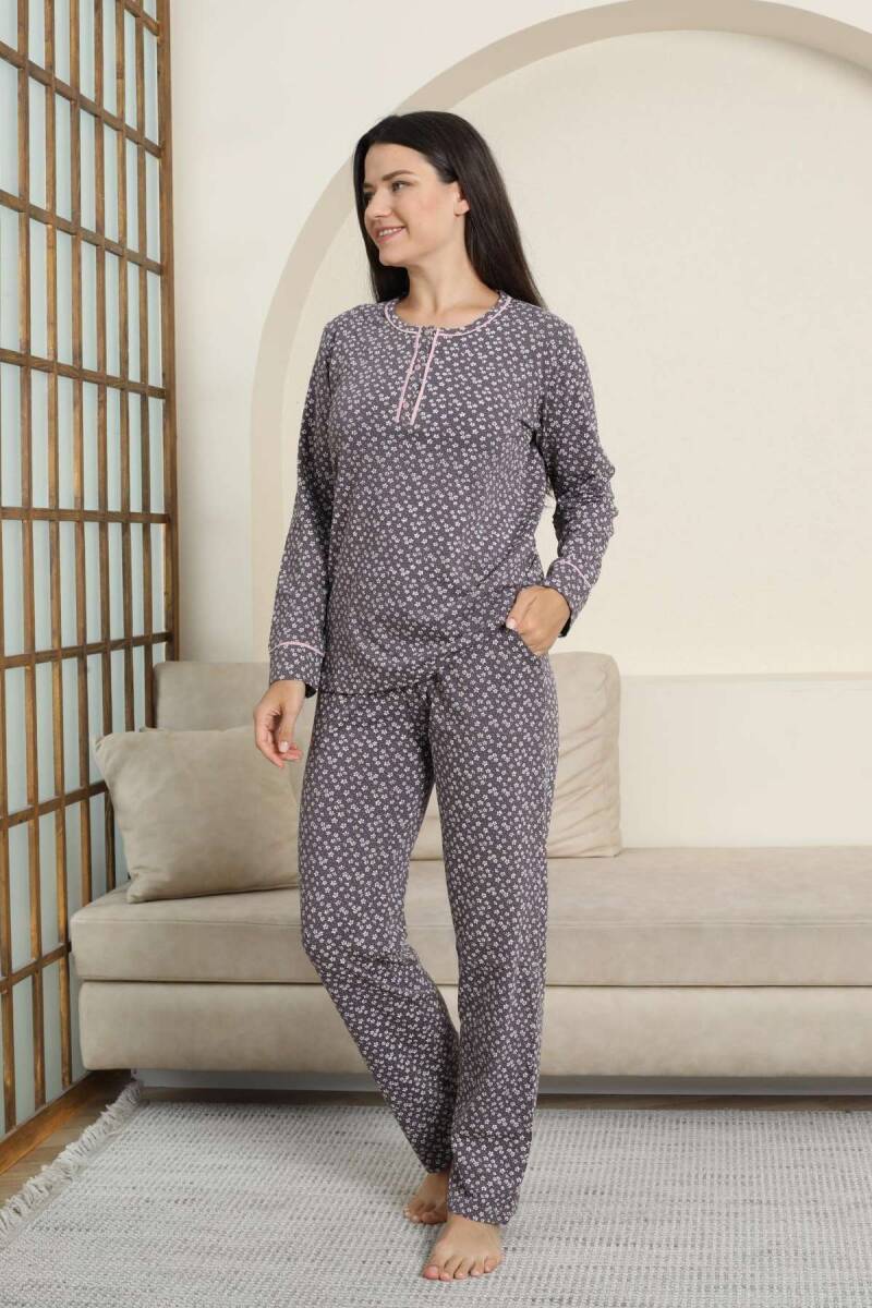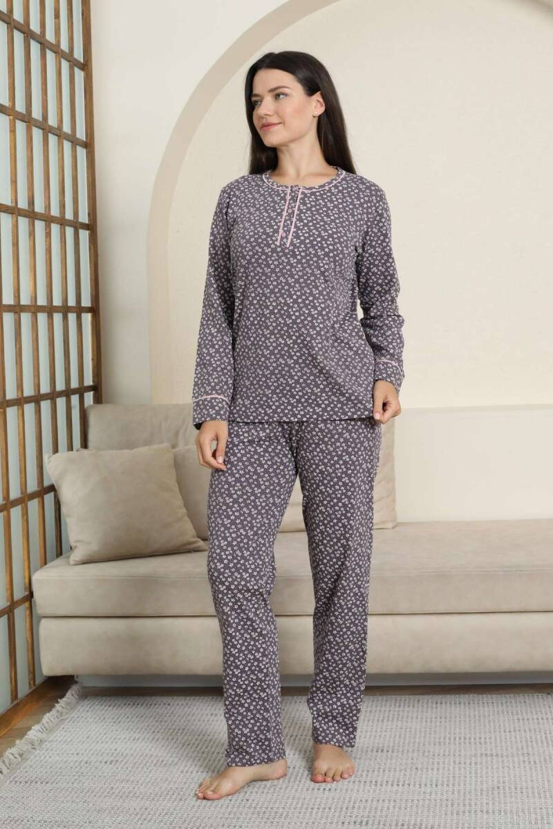 Kadın Pijama Takımı - Mürdüm Papatya Desenli Uzun Kollu Likralı Pamuk 2881UK