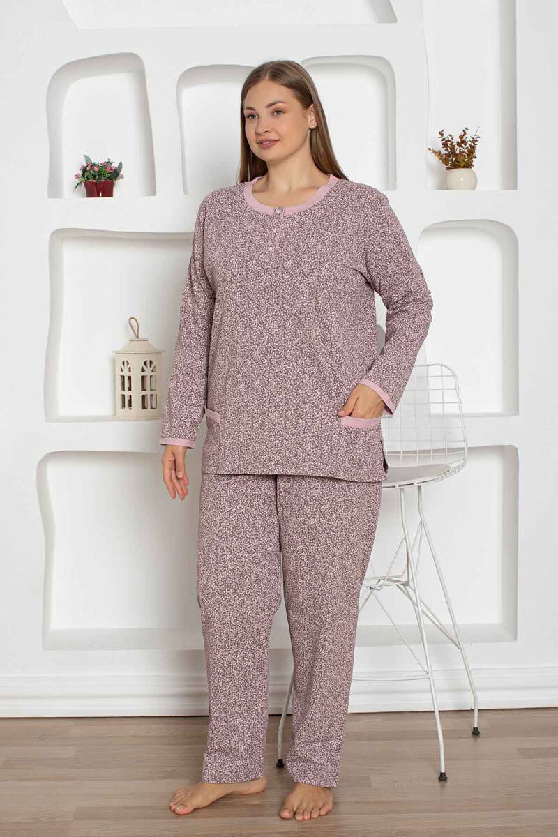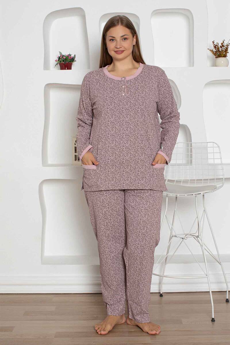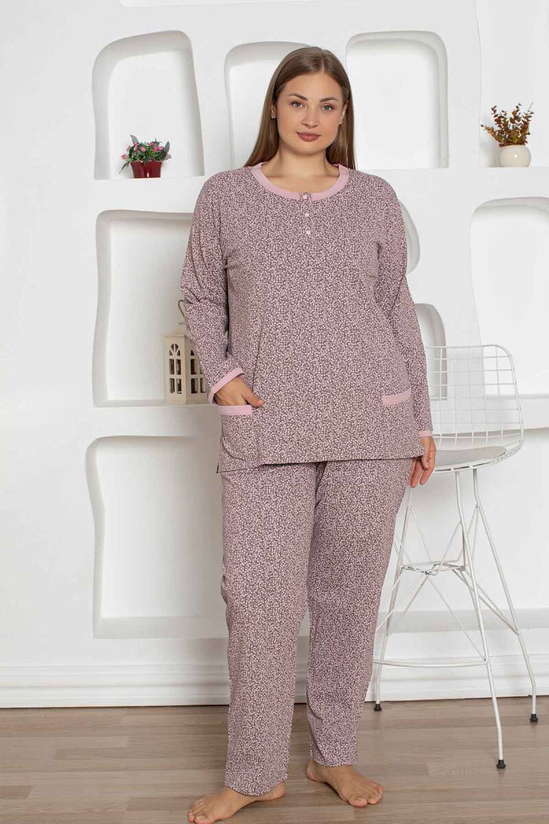Kahverengi Cepli Büyük Beden Bayan Pijama Takımı 2798UYB