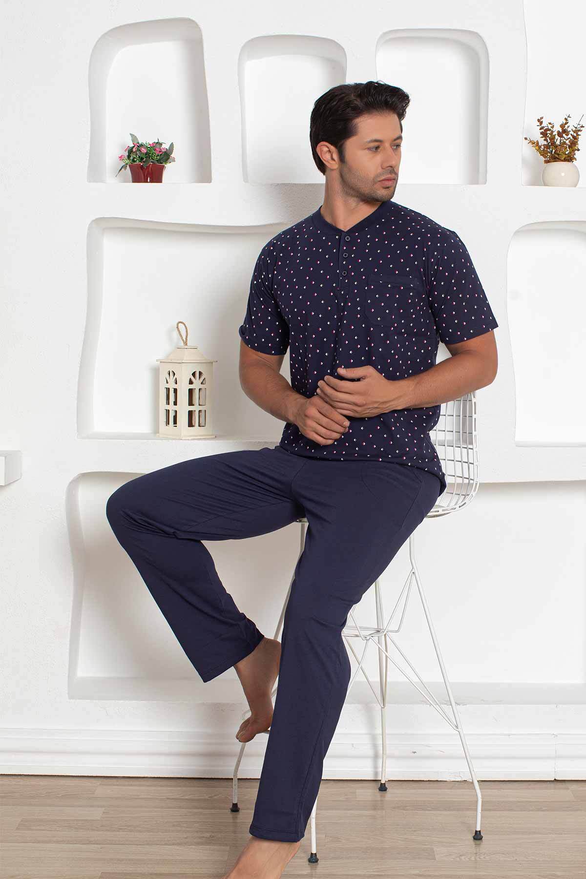 Lacivert Desenli Kısa Kollu Erkek Pijama Takımı 1205KY