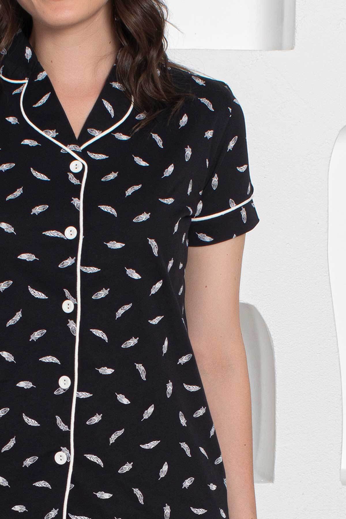 Siyah Boydan Düğmeli Şort Takım 2732ŞT