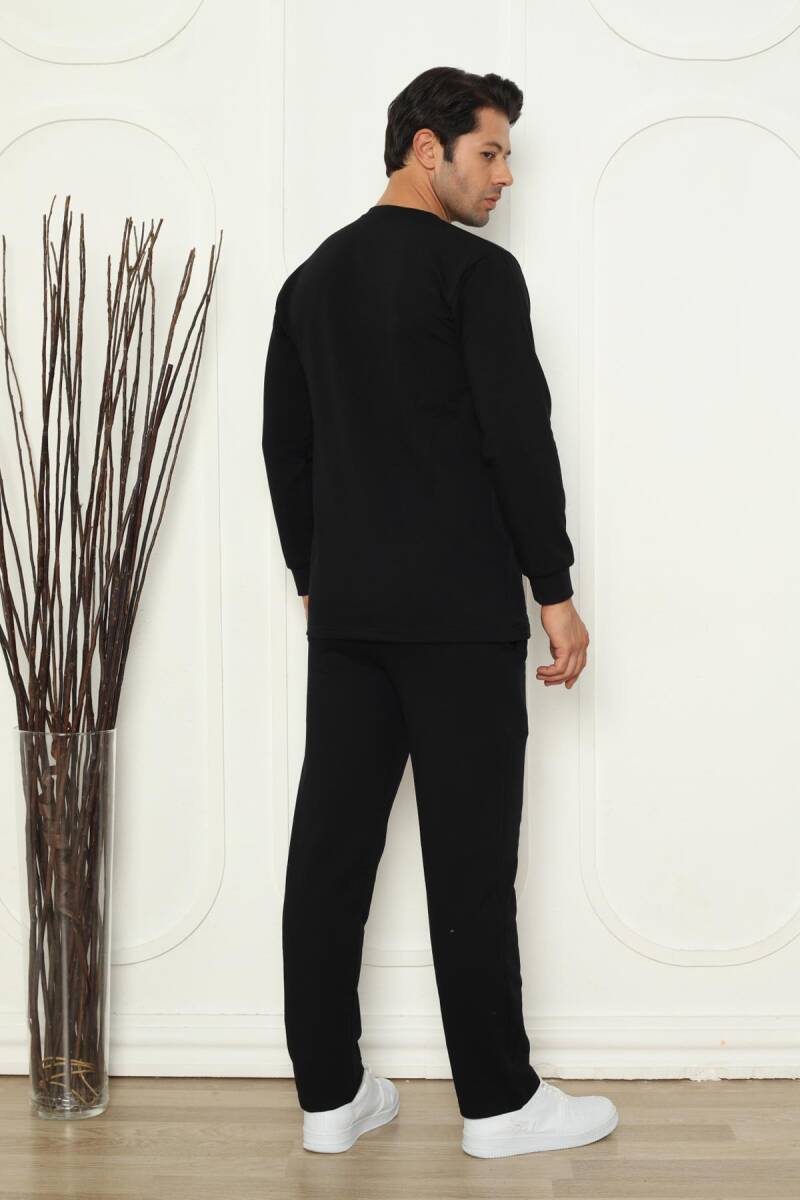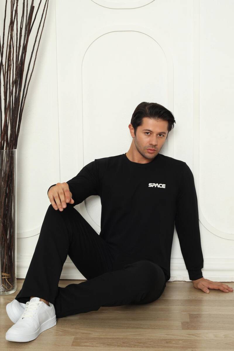 Kışlık Erkek Pijama Takımı - Siyah İki İplik Likralı 1209UKL