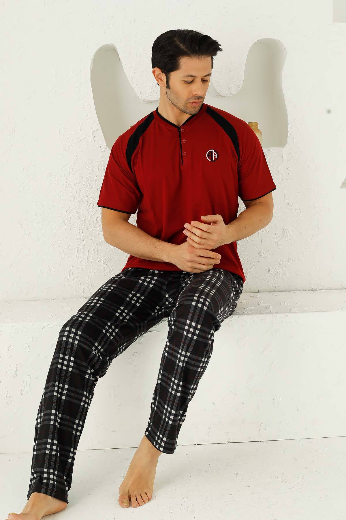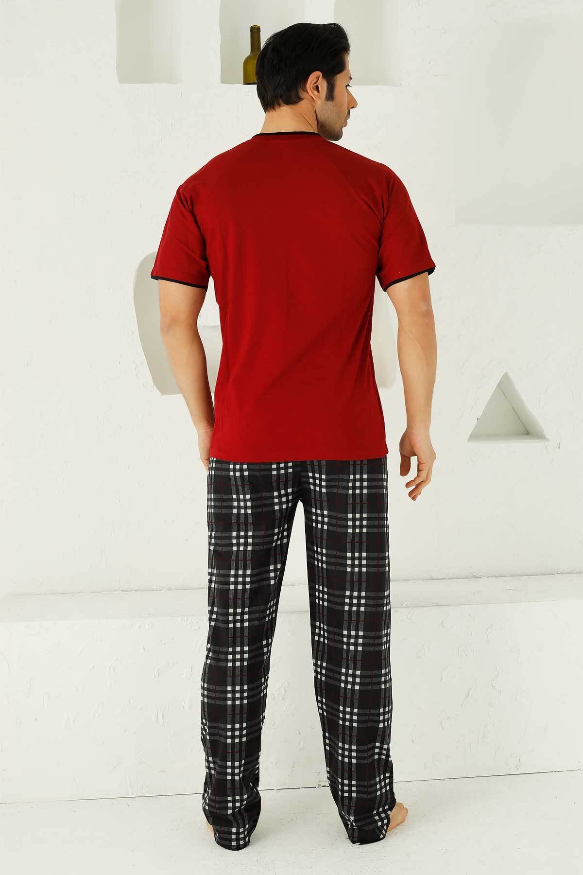 Bordo Ekoseli Kısa Kollu Erkek Pijama Takımı 1192KY